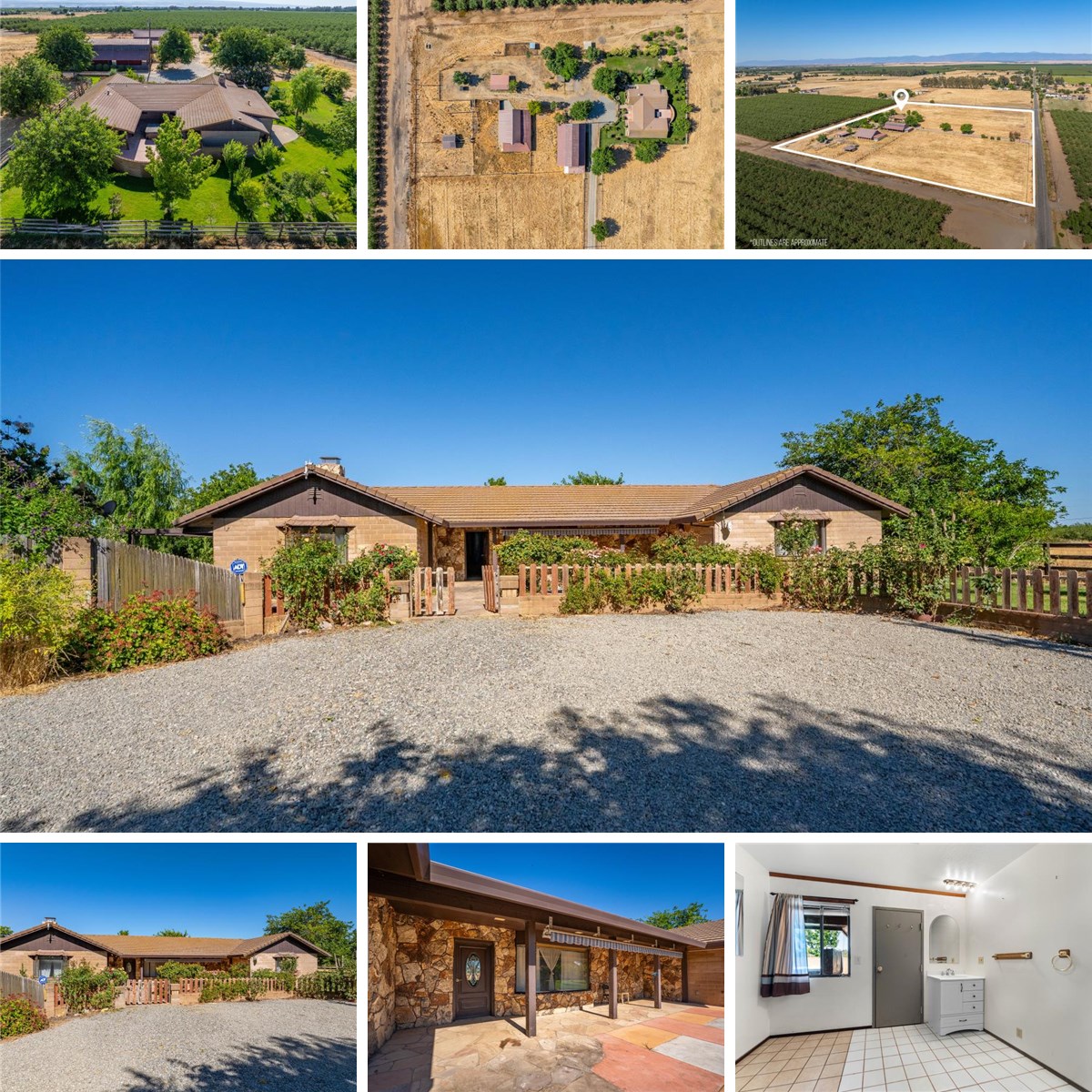 Welcome to your dream ranch in Gerber, California! Nestled on 10 fully irrigated acres within the desirable El Camino Water District, this beautiful 3212 sq. ft. ranch-style home offers the perfect blend of luxury living and country charm. Step inside and be greeted by vaulted ceilings and a stunning floor to ceiling rock fireplace that anchors the spacious living room-ideal for cozy winter nights. The formal dining room offers space for entertaining, while the gourmet kitchen is a chef's dream with granite counter tops, a large pantry, generous pantry, and a generous workspace for culinary creations along with French doors leading to patio area and outdoor BBQ area perfect for entertaining and al fresco dining. The 4-bedroom and 2-bathroom layout includes a luxurious Executive suite featuring a large walk-in closet, jetted soaking tub, and French door access to the courtyard patio that is perfect for slipping into the hot tub. The large laundry room offers a built-in folding area. Designed with functionality in mind, the property includes Dual A/C units, Gated entry, green house, garden area, flourishing rose garden, and lush green lawn areas, 2 large livestock Barns, cattle pens, loading ramp, 2 stud stalls, cross fenced pastures, cemented wash rack area and a newer well. This home is surrounded by an established orchard and provides endless opportunities and privacy. There is even a playhouse for the kiddos! Bring your sheep, cattle, horses or other livestock, and live sustainably, work the land, and embrace the beauty of rural living with panoramic views of Mount Lassen all within minutes of Red Bluff, California!